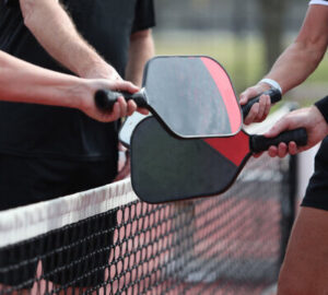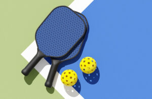Pickleball is a racquet sport that combines elements of tennis, badminton, and ping pong. It is played on a court similar in size to a doubles badminton court with a slightly modified tennis net. The game is played with a hard paddle and a wiffle ball, which is similar to a hollow plastic ball with small holes.